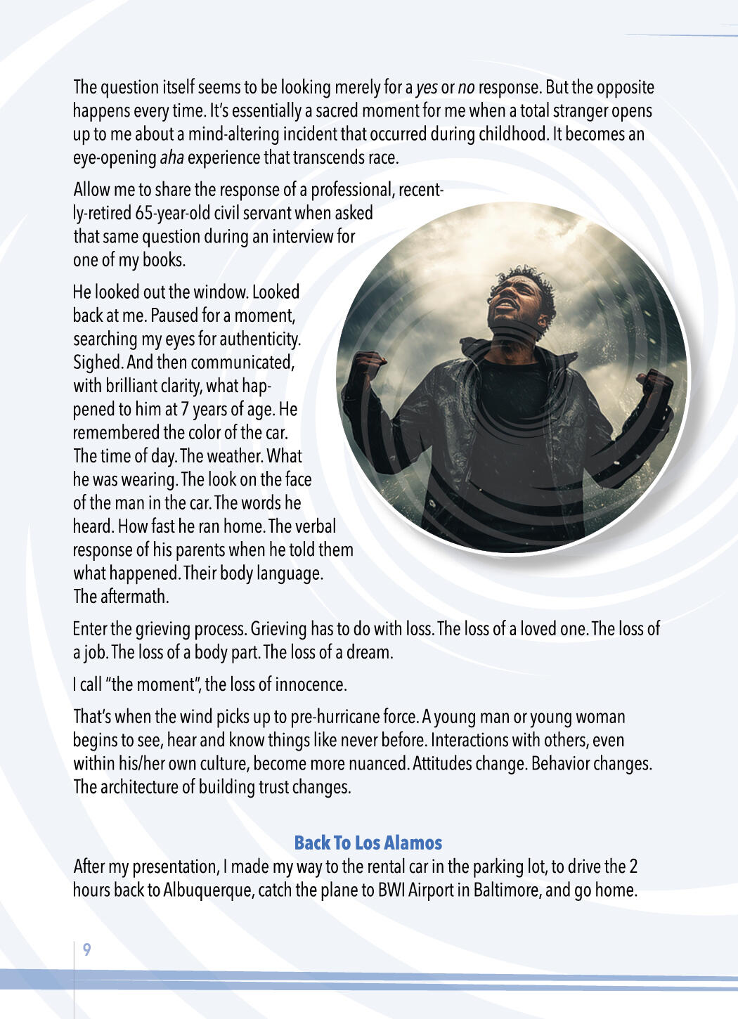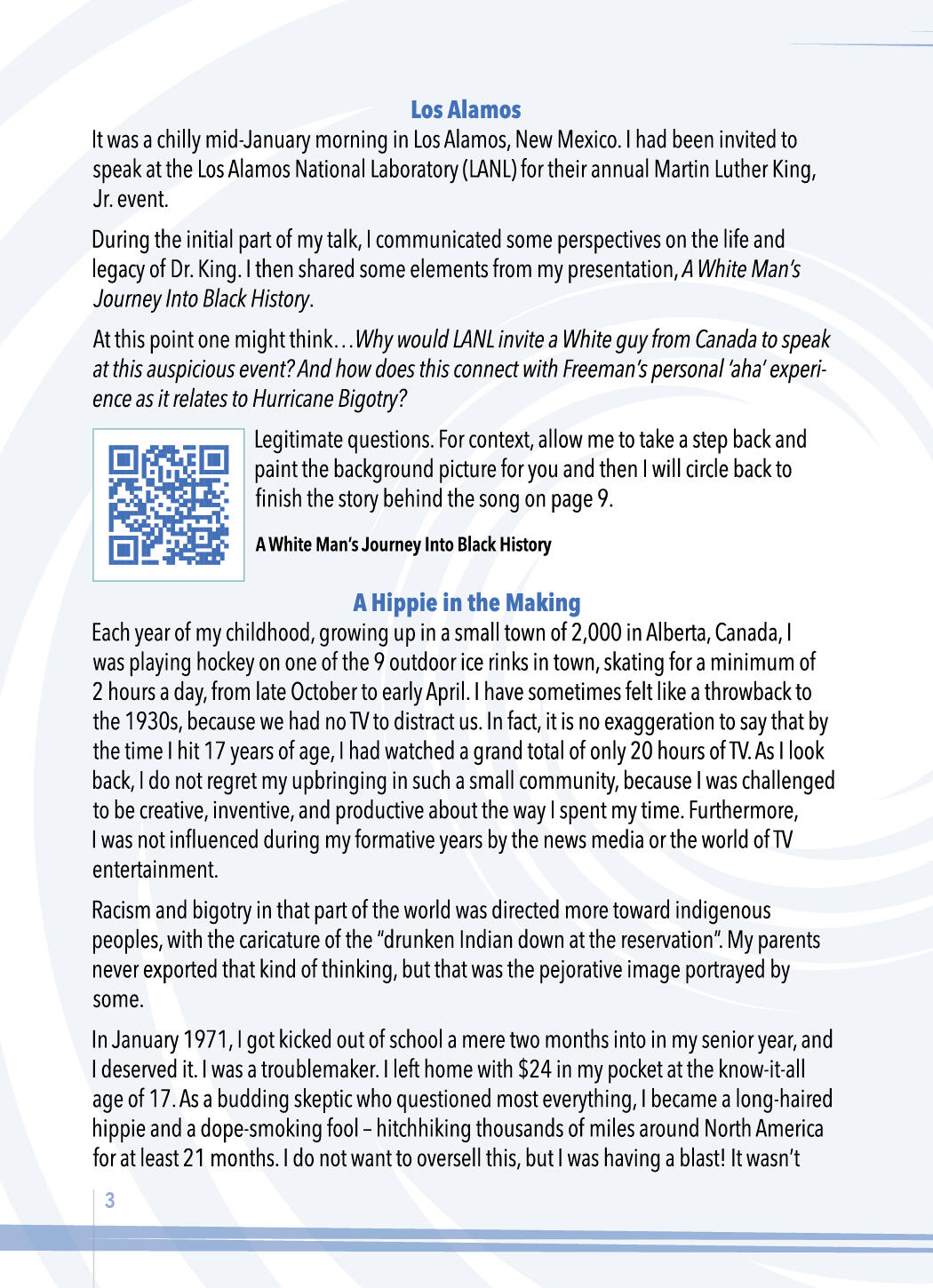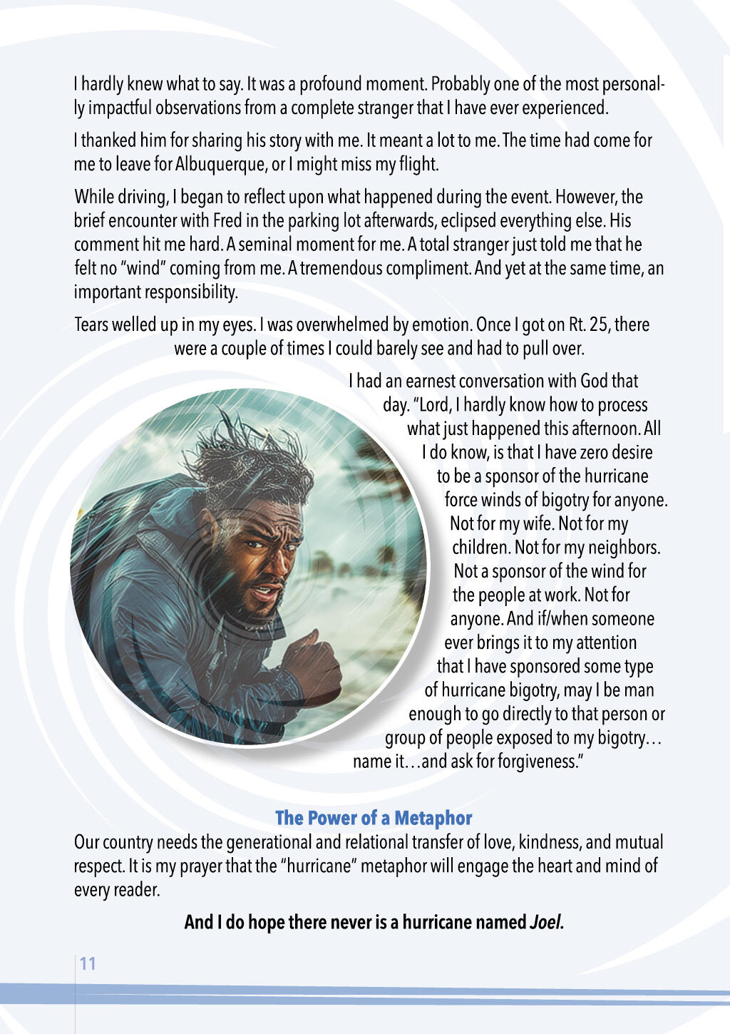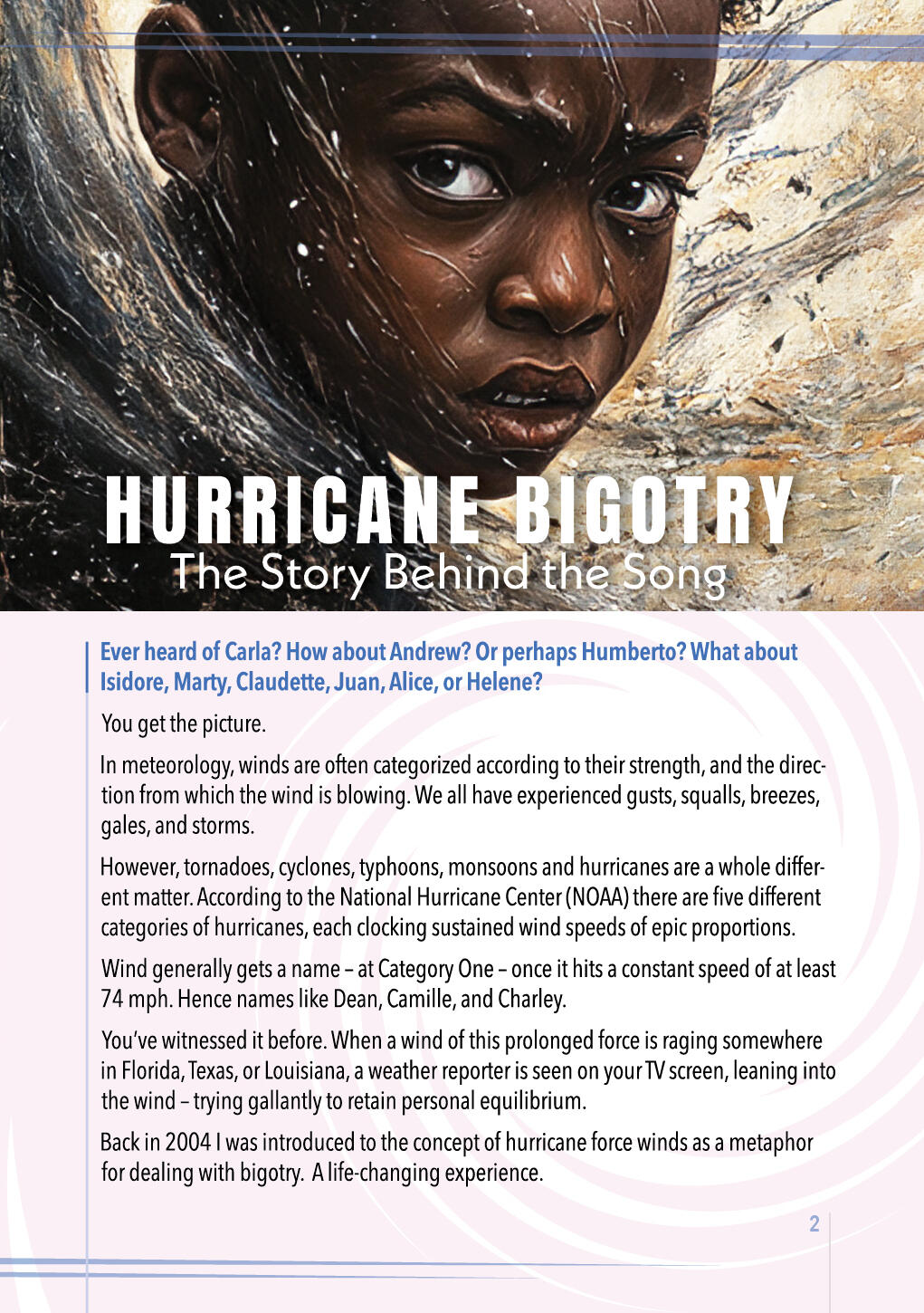 • action-oriented solutionists.ROSETTA UNIVERSE®Another way I have "protested" is by establishing the Rosetta Universe® (see back cover) which utilizes the epic historical drama surrounding the Rosetta Stone and the cracking of the code to hieroglyphics, to invite people of all ages to engage in critical thinking while also providing the tools to help thousands become empathetic solutionists.For all people throughout America and beyond, the hurricane metaphor is designed to foster conversations across the racial divide. I am hoping and praying that the value of mutual respect and the spirit of understanding will permeate everyone reading this information.LOVE FOR BLACK PEOPLEThe Hurricane Bigotry song you have already heard was written especially for people of African descent, who may have been searching for a metaphor for what they have already felt -- in varying degrees of intensity -- throughout their lives.The justification for bitterness, rage, and victimhood are at every turn in the road when one climbs into an anger-driven “vehicle”. Without getting too simplistic, the hurricane imagery can help to frame up the right tools and skills for turning justifiable anger into a vision-driven life.The many land mines of discouragement, assumptions, and exhaustion will always be there wherever one goes. Learning to deal with the relentless hurricane force winds will provide the GPS necessary to navigate around those land mines.Harriet Tubman had many obvious reasons for why she should not be the one to rescue people from the devastation of enslavement. She was dealing with her own “hurricane” force winds. As a woman of diminutive stature, she had no previous training. The people she offered to lead north, suffered from the fear of the known, along with the even greater dread of the unknown. Many of her kidnapped friends in the South grappled with the “Stockholm Syndrome”. And who would place their lives into the hands of a woman wrestling with temporal lobe epilepsy, in such an unpredictable, life-threatening venture?But Harriet became a detective of sorts; a sleuth. She valiantly followed the clues and her instincts, learning what it would take to become one of the most God-fearing, fearless and audacious conductors in the Underground Railroad, leading well over 300 “hurricane-ravaged” people to freedom. It was 19 missions in all. She even garnered the respect of equally audacious, God-fearing leaders like Frederick Douglass and John Brown, who referred to her as “General Tubman”.In a similar manner, resilience and hope search relentlessly like detectives do every day, for the clues that will ultimately steer all honest “hurricane-ravaged” travelers to the freedom found in the Truth.In the eye of the storm, he found the Truth,Resilience and hope, his guiding sleuth.Hurricane Bigotry, may rage and shout,But his spirit endures, there's no doubt.We tend to have authority over whatever we can name.When we get specific, we can become terrific.LOVE FOR EVERYONECEOs, educators, pro athletes, politicians, entrepreneurs, and doctors may like to dress casually in sweats and a baseball cap on a Sunday afternoon. They go for a walk, or a drive, catch a movie in a theater, or do some shopping. No one knows who they are or what they have accomplished.Most Black men have a story or two or three that will astonish the average White person. All Black parents wonder about the best way to educate, especially their Black sons, on how to navigate everyday life, without robbing them of their sense of adventure.Most of us who are White do not have a clue.America, with all its wonder and majesty, has some very dark elements that we cannot ignore. Most White people expend much of their energy, desperately trying to avoid being called a racist.EGG SHELLS & THE RISK FACTORThe "Egg Shell" Effect: Some books discussing America’s racial divide or corporate diversity initiatives leave the readers or participants in such a state of hyper-awareness about their differences that everyone is left walking on egg shells. On edge. Nervous. Fearful of saying something stupid. Confused. Risk-averse or risk-neutral. And precious little sense of humor.Witnessing the tension and emotions surrounding the racial issues in the USA as a young man, initially made me rather tentative about sharing my true feelings.Early in my journey as a White male in the presence of Black people in America, I was afraid of blurting out something stupid or irrelevant. So, I avoided uncomfortable topics altogether. Hid my true thoughts. Walked on eggs shells.Not anymore. As I matured, I developed a high-risk approach to living my life in community with others who do not look like me. Sometimes I would say early on, in so many words, “When, not if, I say something stupid, you can attack my head (I’m not thinking properly), but not my heart (I really do have good intentions and I want to learn).I’m wired differently. I have a White consciousness. And, because of my upbringing, I also have a Canadian consciousness. No matter how hard someone may attempt it -- and some have tried -- I refuse to book an unwarranted “guilt trip”.Most of the time, I let it go. But on rare occasions where it is necessary, I will respond with, "There's something you need to know about me. I am not motivated by guilt."Mark Twain had an interesting perspective that has caused me to take various family members with me in my travels all over the world.In Innocents Abroad (1869) Twain wrote, “Travel is fatal to prejudice, bigotry, and narrow-mindedness, and many of our people need it sorely on these accounts. Broad, wholesome, charitable views of men and things cannot be acquired by vegetating in one little corner of the earth all one's lifetime.”The “Anti-Egg Shell" Effect: In the financial world there are some basics investment concepts that may help us understand the best way to develop genuine cross-cultural friendships that benefit all