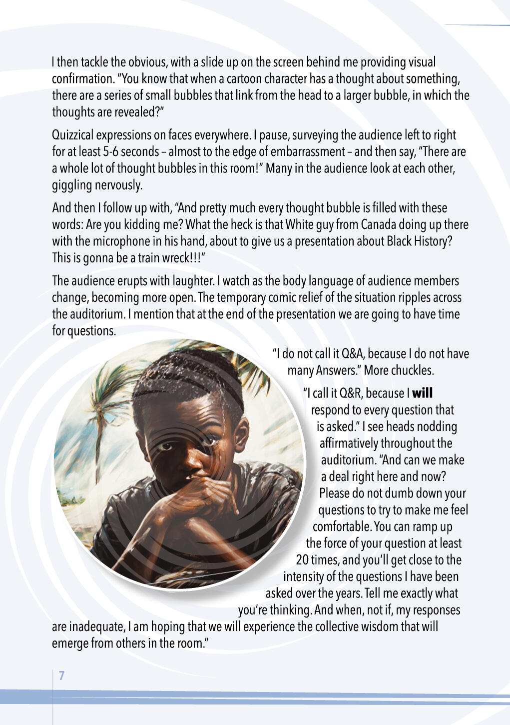 neighbors and more, just might become a habit.When seeking first to understand, you just might be amazed by how much joy and satisfaction fills your heart, regardless the outcome. God is your audience.NOTE: The Black History 365 curriculum project has developed a proprietary process that allows people with opposite views to discuss hot topics in a manner that creates an atmosphere for healing. We call it “The Elephant Experience” and it is making a positive impact in classrooms and in other venues across America. Learn more here: www.BH365.org